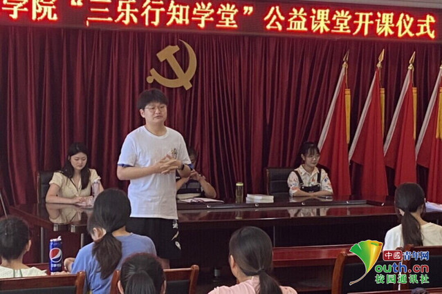 圖為課堂開課儀式上,志愿者們分別向孩子和家長(zhǎng)們介紹教學(xué)科目和教學(xué)內(nèi)容。 中國(guó)青年網(wǎng)通訊員 章俊 攝