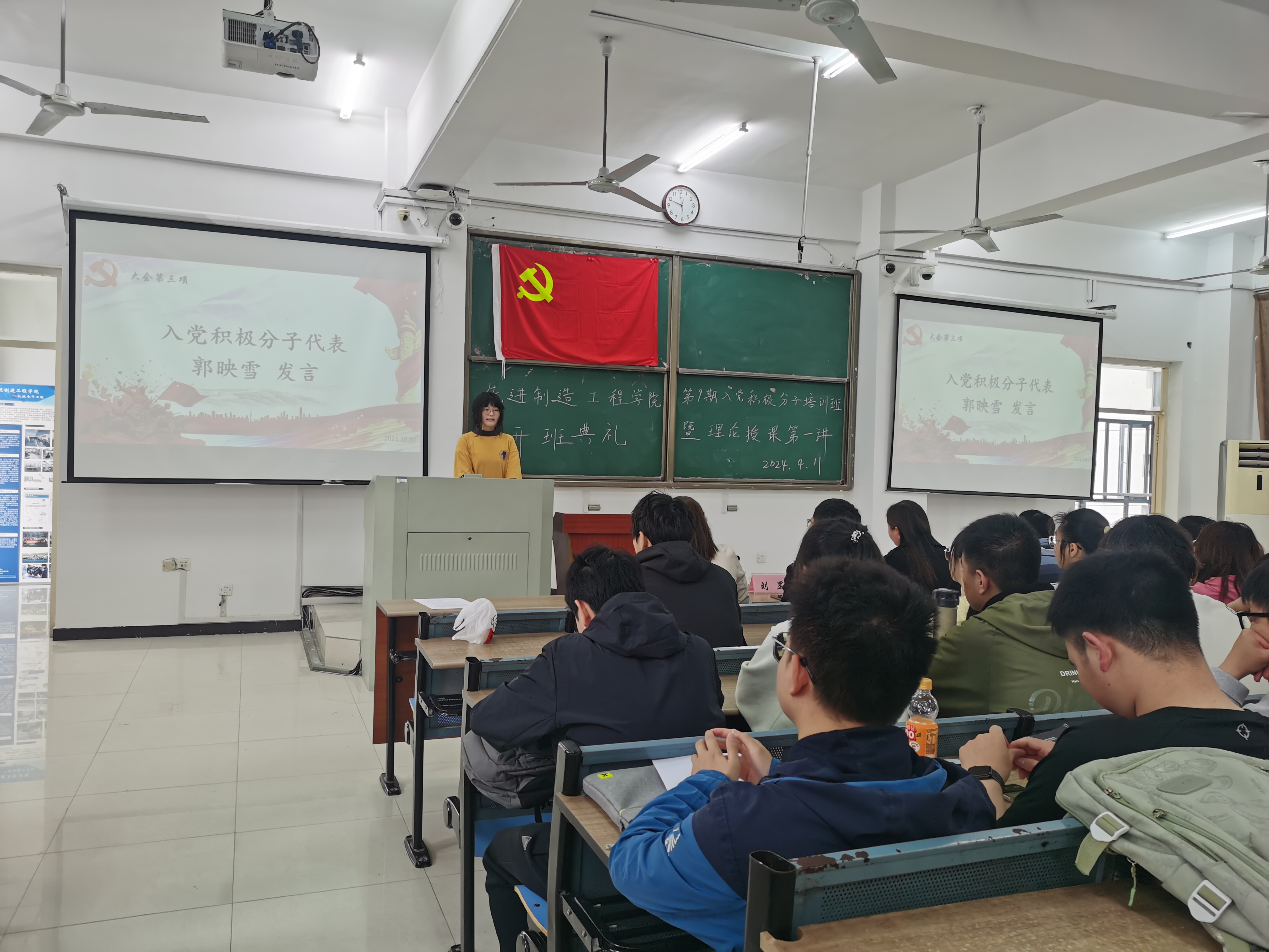 2024年4月11日中午,先進制造工程學院分黨校第九期入黨積極分子培訓班開班典禮在38棟3JT教室舉行。院黨委書記杜娟、學工辦主任劉罡、各學生黨支部書記和109名黨校成員參加開班典禮,典禮由機制學生黨支部書記威力旺老師主持。