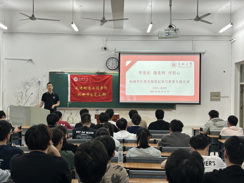 為深入學(xué)習(xí)貫徹習(xí)近平總書記關(guān)于加強(qiáng)黨的紀(jì)律教育的重要論述,增強(qiáng)廣大學(xué)生黨員對正風(fēng)肅紀(jì)的規(guī)律性認(rèn)識,2024523日晚上1830分,合肥大學(xué)機(jī)制學(xué)生黨支部書記威力旺老師在36101教室為支部所有黨員和入黨積極分子講授了題為“學(xué)黨紀(jì) 強(qiáng)黨性 守初心”黨紀(jì)學(xué)習(xí)教育黨課。