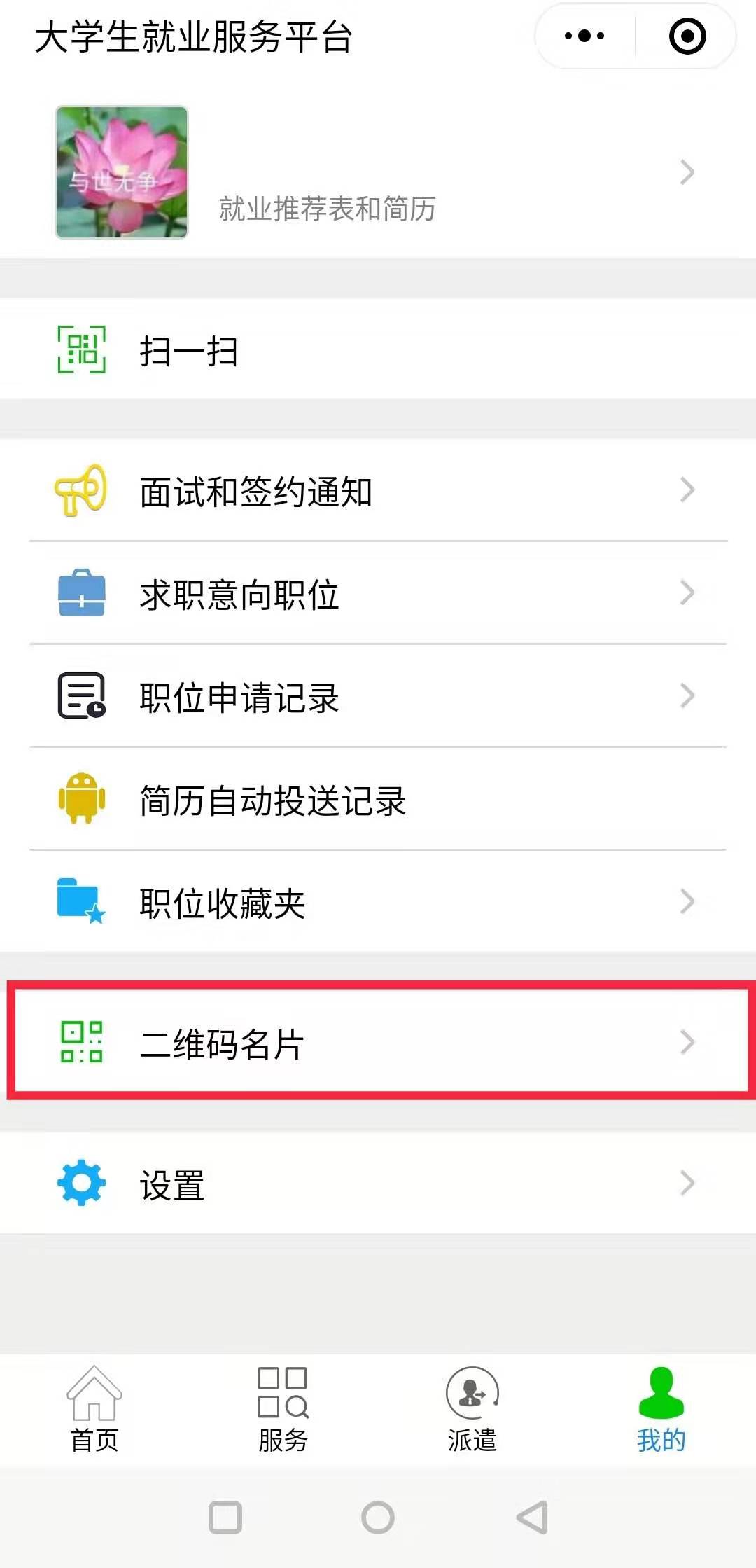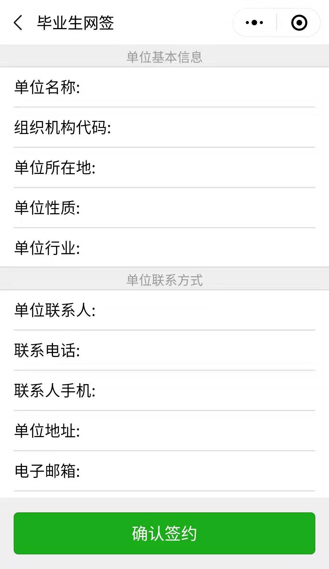 第一步、畢業(yè)生在“我的”中打開“二維碼名片”,向用人單位招聘人員發(fā)送二維碼,并告知使用微信掃描二維碼。 備注:在簽約前請務(wù)必在“派遣”“生源信息維護(hù)”確認(rèn)信息與本人信息完全一致,否則不能簽約。 第二步、用人單位打開微信,使用掃一掃功能,掃碼后,會出現(xiàn)填寫簽約信息頁面;用人單位首先驗證畢業(yè)生信息,確認(rèn)下一步后,填寫本單位基本信息和聯(lián)系方式,并選擇簽約畢業(yè)生的工作崗位,然后點擊“確認(rèn)簽約”后提交。 備注:若畢業(yè)生已經(jīng)在系統(tǒng)中已經(jīng)就業(yè),需提交解約申請或管理員后臺解鎖處理(設(shè)置畢業(yè)去向為待就業(yè))。