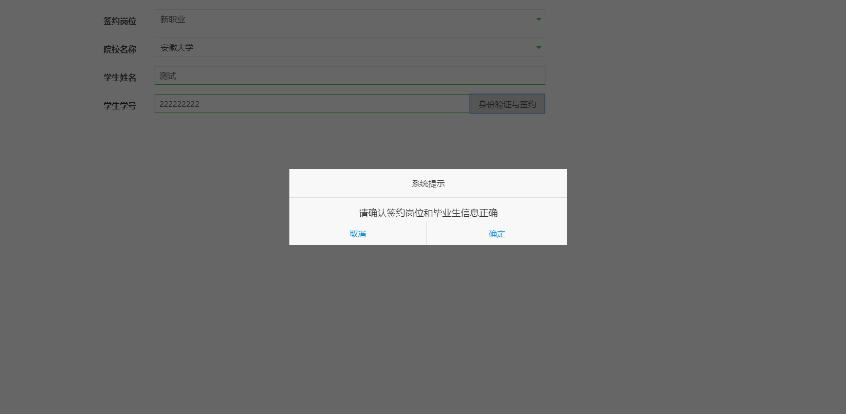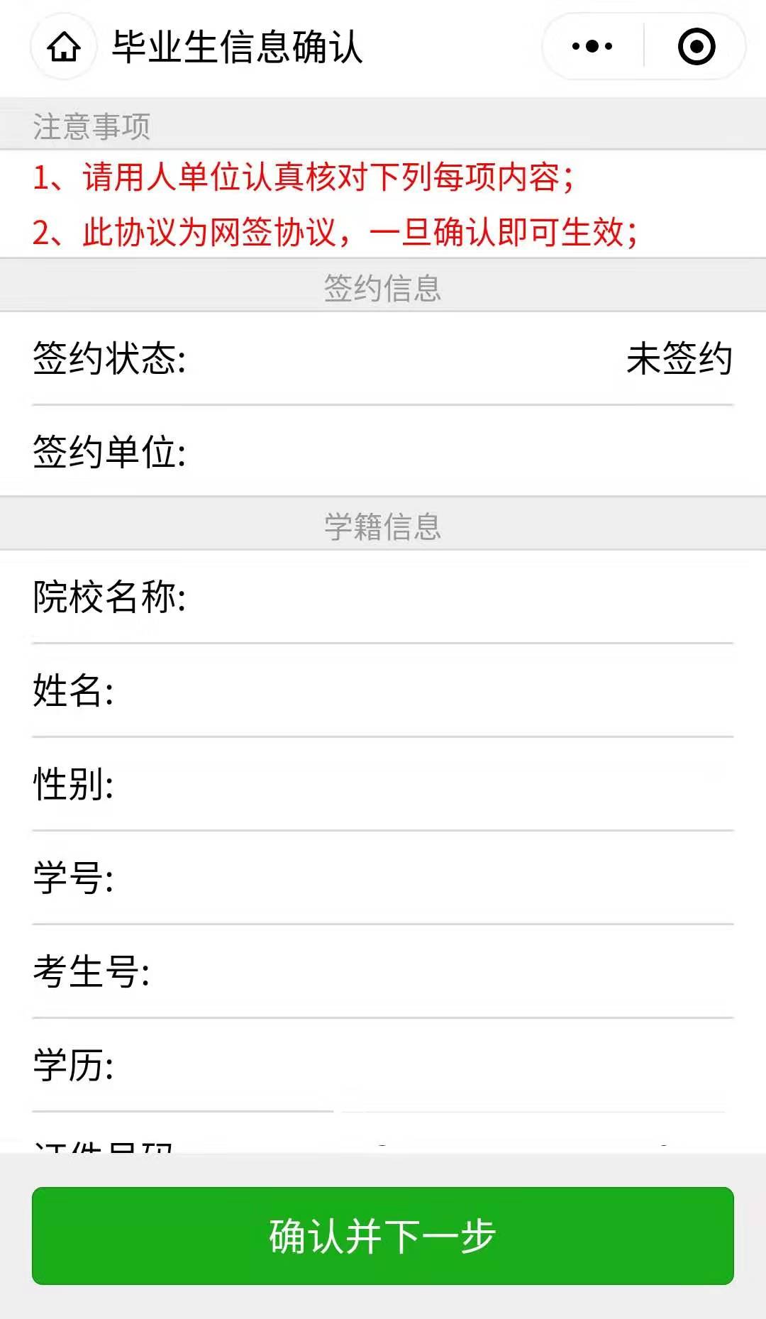 畢業(yè)生微信搜索小程序“安徽省大學(xué)生就業(yè)服務(wù)平臺”,打開后選擇本校并輸入“姓名+學(xué)號+身份證號”進(jìn)行微信綁定(若出現(xiàn)非無法綁定的情況,請聯(lián)系學(xué)校管理員解除原來的綁定)。 簽約條件:派遣系統(tǒng)內(nèi)畢業(yè)生未與其他任何單位達(dá)成就業(yè)協(xié)議。