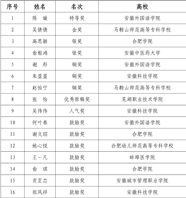 根據(jù)安徽省教育廳辦公室皖教辦函〔2021〕82 號(hào)《關(guān)于舉辦“第十四屆安徽省順天鄉(xiāng)杯韓國(guó)語演講大賽”的通知》安排,依據(jù)賽前公布的比賽規(guī)則,經(jīng)大賽組委會(huì)選拔評(píng)比,現(xiàn)將大賽結(jié)果相關(guān)事宜通知如下: