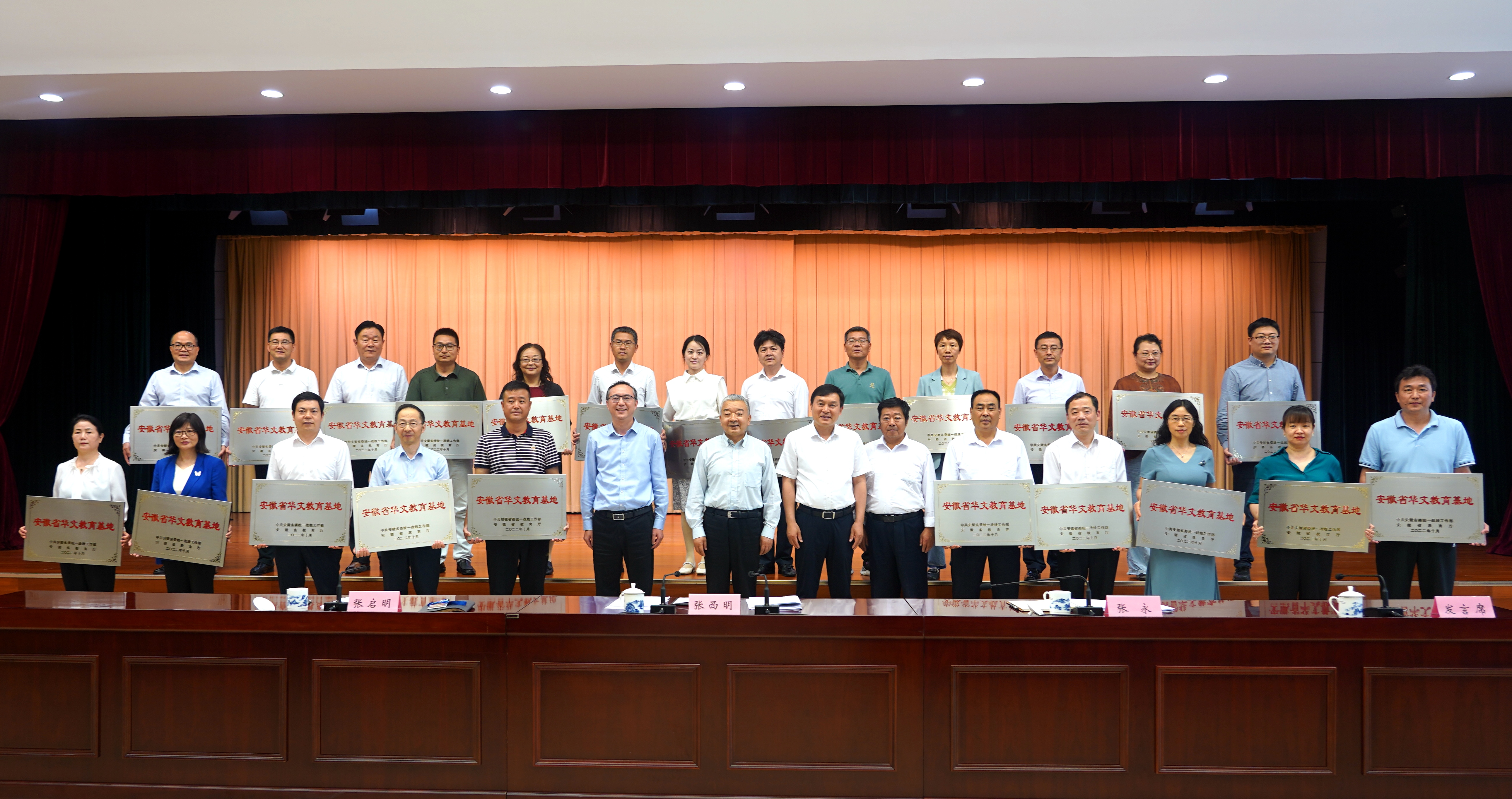 近日,安徽省華文教育基地授牌儀式在合肥市舉行。省委常委、統(tǒng)戰(zhàn)部部長張西明出席為首批基地授牌。省委統(tǒng)戰(zhàn)部、省僑辦和省教育廳負責同志參加授牌。經(jīng)過評選和考察,我校獲批成為首批安徽省級華文教育基地。