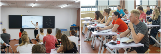 我校為來自德國的大學生們安排了豐富多彩的活動。不僅有中文的學習,還有各項中國傳統(tǒng)文化的體驗。不僅有中國企業(yè)的參訪,也有對中國大好河山的考察。在中文課上,中文老師不僅教授了拼音和漢字,還介紹了中國的傳統(tǒng)文化和中國的概況,讓學生們對中文、中國產生了濃厚的興趣。在傳統(tǒng)文化體驗課上,書法老師教授了基本的書法知識,學生們有機會親自揮毫潑墨,一覽中國書法的美妙與藝術;學生們跟著老師學習剪紙技藝,剪出了形態(tài)各異的中國漢字;專業(yè)的茶藝老師進行了茶藝表演和講解,讓學生們體會到中國茶文化的獨特魅力;學生們還親身體驗了漢服,感受古代的風姿和儀態(tài),并參與了踢毽子、投壺等中國傳統(tǒng)游戲。