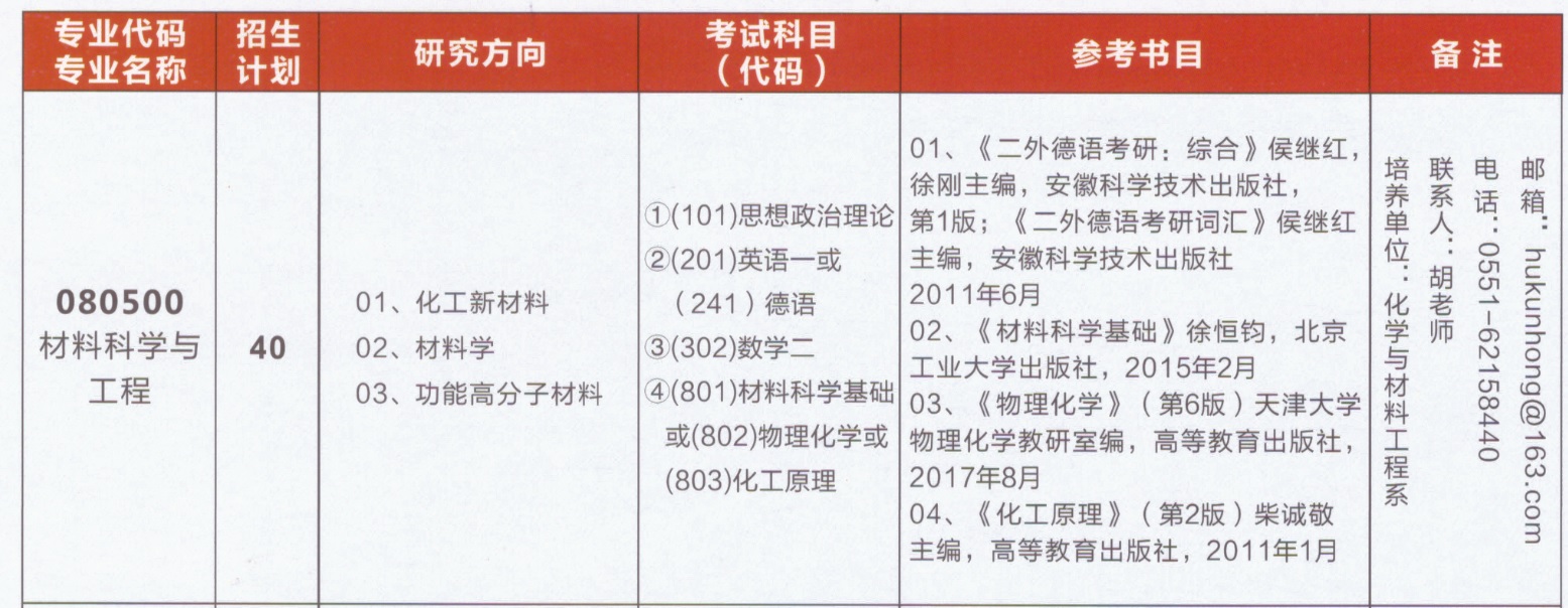 合肥學院材料科學與工程一級學科碩士點招生簡章