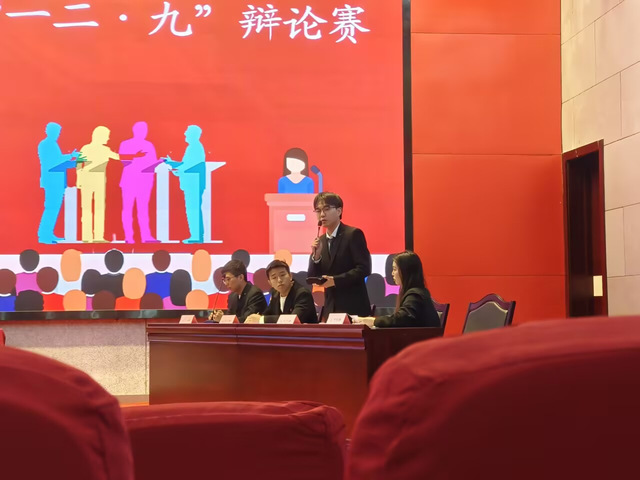 代表我院出戰(zhàn)此次辯論賽的胡濤、趙文武、胡致遠(yuǎn)以及潘晨曦四位同學(xué),在比賽伊始,便即刻全身心投入狀態(tài),旋即與對方辯手展開了極為激烈的交鋒。