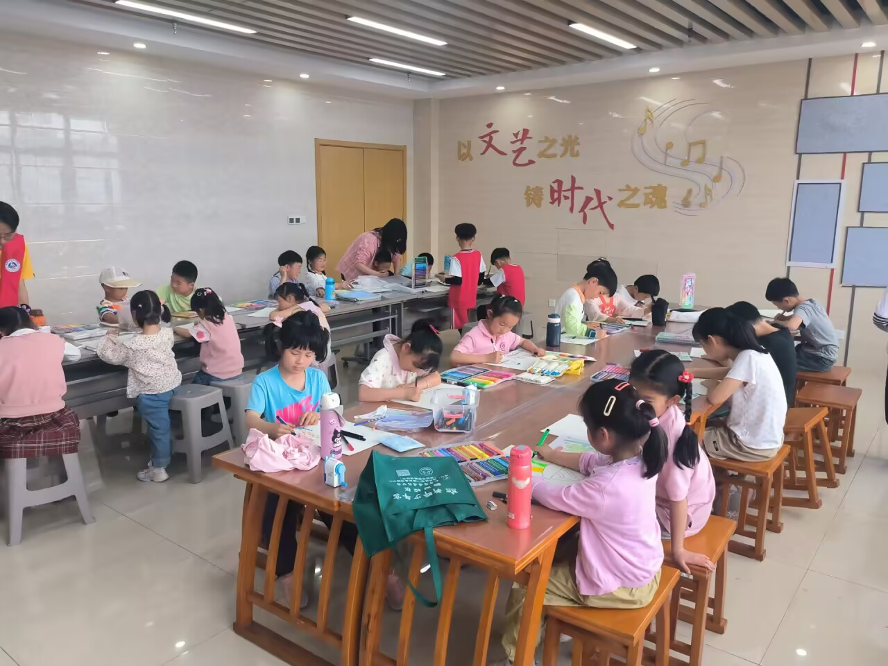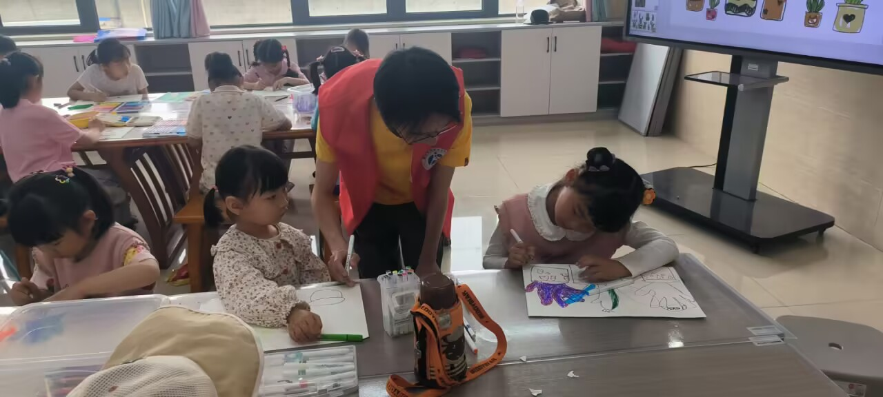 時(shí)間在悄然無(wú)聲中悄然流逝,轉(zhuǎn)瞬間,下課鈴聲響起。小朋友們卻依舊沉醉在創(chuàng)作的歡樂(lè)海洋里,他們的作品漸漸展現(xiàn)出獨(dú)一無(wú)二的個(gè)性與魅力。志愿者們目睹這一幅幅溫馨而又充滿奇思妙想的畫(huà)面,內(nèi)心洋溢著滿滿的成就感與歡樂(lè)。