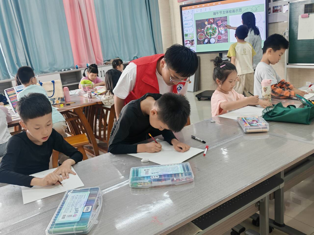 5月24日下午兩點半,朝霞居委會內,迎來合肥大學能源材料與化工學院的2名志愿者,他們熱心善良,同朝霞居委會的美術老師一起教小朋友學習畫畫,激發(fā)了小朋友們對畫畫的熱情。