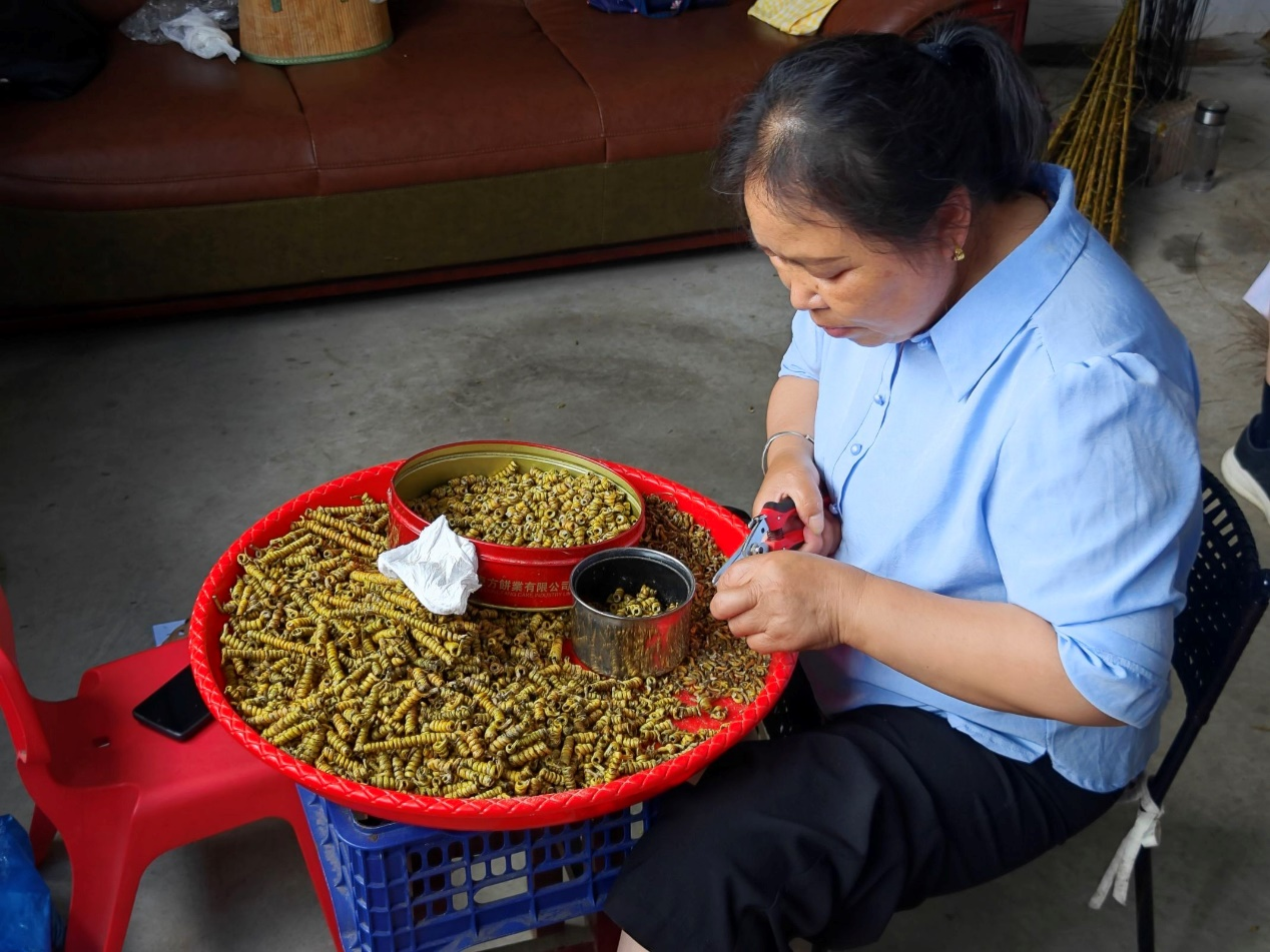 調(diào)研行程中,團(tuán)隊(duì)特別走進(jìn)霍山衛(wèi)星石斛有限公司的手工生產(chǎn)基地,目睹傳統(tǒng)石斛加工技藝的傳承與創(chuàng)新。生產(chǎn)車間內(nèi),數(shù)十位村民圍坐在一起,熟練地進(jìn)行著石斛鮮條的分揀、晾曬、纏繞等工序。阿姨將半干的石斛莖條在特制模具上精準(zhǔn)纏繞:“這是制作楓斗的關(guān)鍵步驟,每根楓斗要繞12圈,松緊度全靠手感。”同時(shí),公司采取“企業(yè)+農(nóng)戶”模式,培訓(xùn)村民掌握分揀、烘焙、塑形等10余項(xiàng)手工技藝,將分散的家庭式加工轉(zhuǎn)化為標(biāo)準(zhǔn)化工坊生產(chǎn),目前已帶動(dòng)十余戶村民在家門口就業(yè),人均年收入數(shù)十萬元。