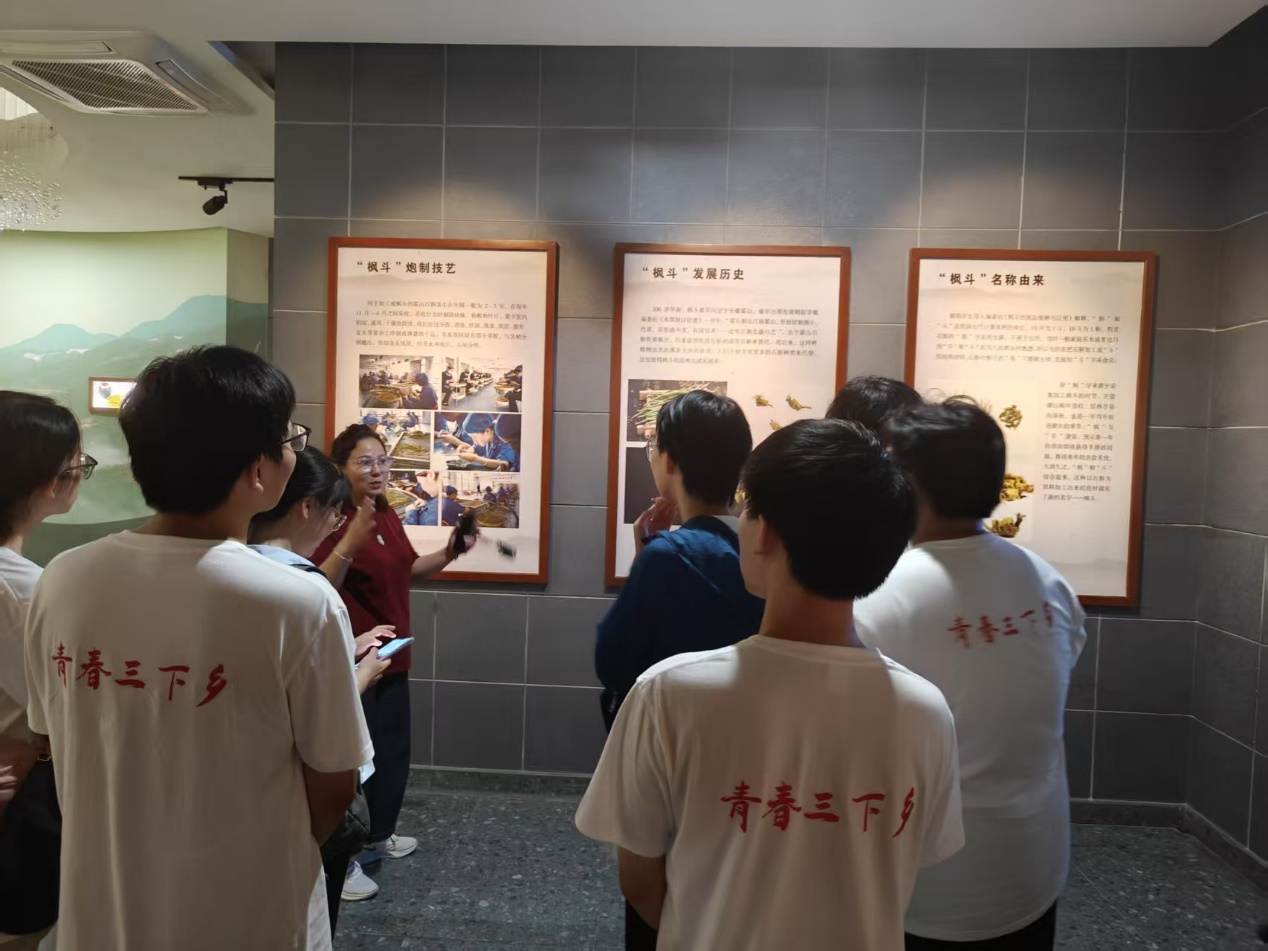 在高山何飛茶廠,我們參觀了殺青機(jī)、揉捻機(jī)、烘干機(jī)等茶葉處理設(shè)備,當(dāng)?shù)卮迕駷槲覀冎v解了各個(gè)機(jī)器的用途,團(tuán)隊(duì)成員通過觀察設(shè)備細(xì)節(jié),直觀感受機(jī)械化生產(chǎn)對(duì)傳統(tǒng)制茶的效率提升與品質(zhì)把控,為分析創(chuàng)業(yè)硬件投入與產(chǎn)出效益積累了實(shí)證素材。
