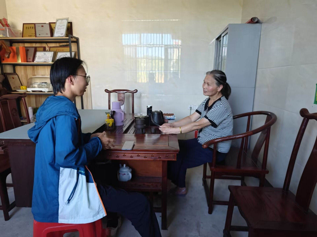 ▲圖為團(tuán)隊(duì)成員采訪高山何飛茶廠老板萬瑞芬