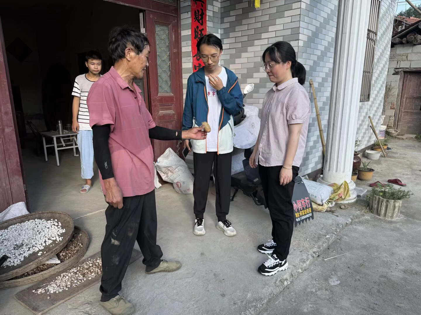 沿著蜿蜒山路,團(tuán)隊(duì)來到太平畈特色中藥材種植基地。老板何海青作為霍山傳統(tǒng)中藥材加工的“老手藝人”,他的工坊里彌漫著天麻、茯苓、黃精的清香,竹匾與竹篩層層疊疊鋪滿了晾曬的藥材?!艾F(xiàn)在不少人辦廠就盯著眼前賺快錢,可中藥材講究‘道地性’,急不得。”何老板一手拿著藥材,一邊講述自己的堅(jiān)持。他將父輩的傳統(tǒng)工坊拓展規(guī)模,卻仍保留著最“笨拙”的傳統(tǒng)工序,拒絕用硫磺熏制加快干燥,寧愿多花時(shí)間自然晾曬,成本增加卻保住了藥材的藥效?!皠傞_始利潤少,但口碑做起來了,現(xiàn)在老客戶主動(dòng)加價(jià)買‘無硫干貨’。”基地雖規(guī)模不大,卻憑借“慢工出細(xì)活”的匠心,在當(dāng)?shù)匦∮忻麣狻!皠?chuàng)業(yè)就像種藥材,根扎得深,后期才能長得旺。只顧眼前那點(diǎn)利,遲早砸了招牌?!?nbsp;面對大學(xué)生返鄉(xiāng)創(chuàng)業(yè)的建議,何老板希望大家不止局限于課本,要去實(shí)踐,要堅(jiān)持不懈,不怕吃苦,跟著老一輩的人的步伐,從他們那里得到經(jīng)驗(yàn)。他的話里,藏著鄉(xiāng)土創(chuàng)業(yè)者最樸素的商業(yè)智慧。