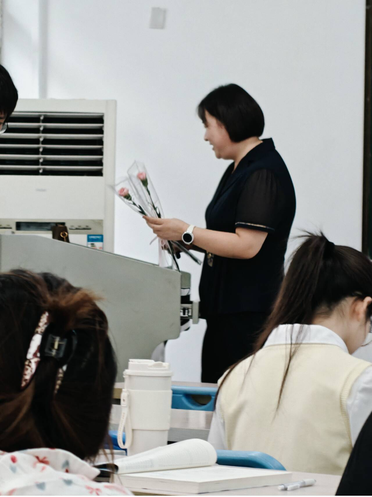 課間時(shí)分,同學(xué)們手捧著精心挑選的鮮花,帶著靦腆又真摯的笑容,陸續(xù)走進(jìn)辦公室和教室。面對(duì)平日里在講臺(tái)前耐心講解公式定理、在實(shí)驗(yàn)室里指導(dǎo)實(shí)驗(yàn)操作的老師,大家紛紛遞上鮮花,真誠(chéng)地向老師表示感謝:“老師,節(jié)日快樂(lè),謝謝您”。
