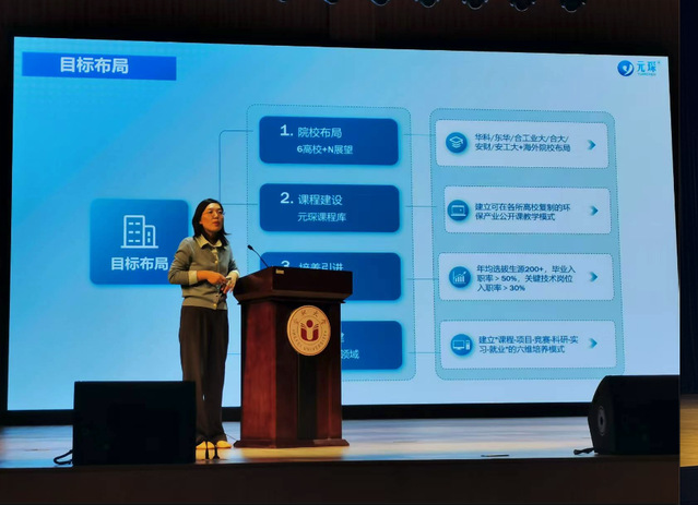 最后,專業(yè)領(lǐng)域相關(guān)企業(yè)代表、安徽元琛環(huán)??萍脊煞萦邢薰救肆Y源總監(jiān)張利利女士受邀出席典禮。她為全體新生分享了能源材料與化工行業(yè)的最新動態(tài)和廣闊發(fā)展前景,并同步開展了新生職業(yè)規(guī)劃啟蒙教育,讓新生們對未來的職業(yè)發(fā)展有了更清晰的認識。