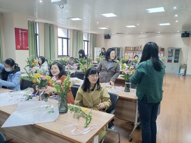 人間最美三月天,春花爛漫展新顏。在這春回大地、萬物復(fù)蘇的美好季節(jié)里,為豐富女教職工的業(yè)余生活,在學(xué)院分工會女工委吳義平教授的組織下,于3月21日在生化樓三樓會議室舉辦了“‘花’約三月,共赴美好”為主題的插花活動,邀請學(xué)院各專業(yè)的二十名女教師參加,分工會主席劉沛平出席并向全體女工致以最誠摯的問候。