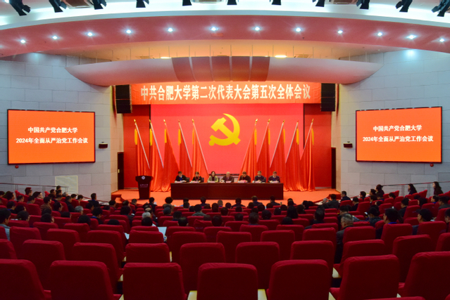 3月25日下午,中國共產(chǎn)黨合肥大學(xué)第二次代表大會(huì)第五次全體會(huì)議暨2024年全面從嚴(yán)治黨工作會(huì)議于圖書館報(bào)告廳A廳召開。全體正式代表、列席代表共計(jì)113人參加會(huì)議。
