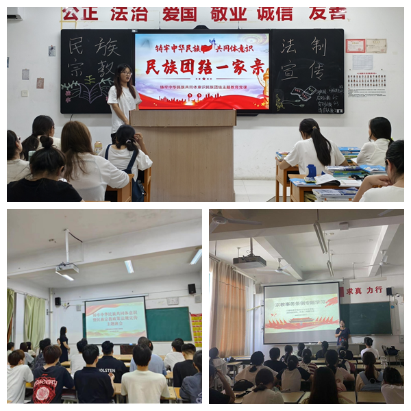 為深入貫徹落實黨的二十大精神,進(jìn)一步增強廣大學(xué)生對中華民族共同體意識的理解,同時加強對民族宗教政策法規(guī)的宣傳教育,我院各班于2024年5月開展了“鑄牢中華民族共同體意識”宣傳主題班會。 班會上,各班宣講人首先向同學(xué)們介紹了中華民族共同體的基本概念和形成歷程,強調(diào)了鑄牢中華民族共同體意識在新時代背景下的重大意義。其次,圍繞如何更好地傳承和弘揚中華民族優(yōu)秀傳統(tǒng)文化、如何促進(jìn)各民族之間的交流融合等議題展開了深入的講述。 隨后,各班進(jìn)行了民族宗教政策法規(guī)宣傳,向?qū)W生們普及了我國的民族宗教政策法規(guī),包括民族平等、民族團(tuán)結(jié)、宗教事務(wù)管理等方面的基本原則和具體規(guī)定。 此次主題班會的順利開展進(jìn)一步增強了學(xué)生對中華民族共同體意識的認(rèn)識和理解,為今后更好地踐行民族團(tuán)結(jié)、宗教和諧理念奠定了堅實基礎(chǔ)。我院學(xué)生紛紛表示,通過這次學(xué)習(xí),他們不僅對民族宗教政策法規(guī)有了更加全面深入的了解,也更加堅定了維護(hù)民族團(tuán)結(jié)、促進(jìn)宗教和諧的信念。(撰稿:羅鑫、彭錦 初審:符琳 復(fù)審:王迅 終審:劉良宏) |