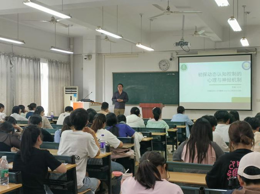 為深入促進(jìn)學(xué)術(shù)交流與知識(shí)共享,開拓我院本科生學(xué)術(shù)視野和學(xué)術(shù)水平,6月25日下午3點(diǎn),安徽醫(yī)科大學(xué)精神衛(wèi)生與心理科學(xué)學(xué)院副教授、碩士生導(dǎo)師李楠教授應(yīng)邀于一期三棟307教室,為我院師生作了題為“初探動(dòng)態(tài)認(rèn)知控制的心理與神經(jīng)機(jī)制”的學(xué)術(shù)報(bào)告。報(bào)告會(huì)由教育學(xué)院副院長(zhǎng)劉菂斐主持,我院應(yīng)用心理學(xué)專業(yè)近百名學(xué)生聆聽了此次報(bào)告會(huì)。 報(bào)告會(huì)上,李楠教授首先從“認(rèn)知控制”的概念入手,引出動(dòng)態(tài)認(rèn)知控制的基本概念和行為現(xiàn)象,并結(jié)合實(shí)例,讓師生們對(duì)動(dòng)態(tài)認(rèn)知控制有了更為直觀的理解。隨后,李楠教授通過介紹動(dòng)態(tài)認(rèn)知控制心理機(jī)制的傳統(tǒng)主流觀點(diǎn),進(jìn)一步就近年來的研究證據(jù),提出動(dòng)態(tài)認(rèn)知控制的新心理機(jī)制,并詳細(xì)闡述了驗(yàn)證動(dòng)態(tài)認(rèn)知控制新心理機(jī)制的具體實(shí)驗(yàn)步驟與操作方法。李楠教授還就當(dāng)前該領(lǐng)域的研究熱點(diǎn)和難點(diǎn)進(jìn)行了深入剖析,為我院師生指明了未來的研究方向。 在講座臨近尾聲之時(shí),在場(chǎng)的師生們積極提問,李楠教授一一進(jìn)行耐心的解答,現(xiàn)場(chǎng)氣氛熱烈而融洽。 李楠教授基于前人及近期研究,介紹了動(dòng)態(tài)認(rèn)知控制的心理機(jī)制的發(fā)現(xiàn)與發(fā)展,具有很強(qiáng)的指導(dǎo)性。本次學(xué)術(shù)報(bào)告會(huì)的順利開展幫助同學(xué)們開拓了學(xué)術(shù)視野,拓展了學(xué)術(shù)思維。與會(huì)人員收獲頗豐,希望再次聆聽李楠教授的講座。(教育學(xué)院撰稿:周雨荷 初審:劉菂斐 復(fù)審:王迅終審;劉良宏) |