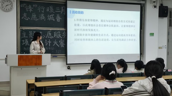 3月27日晚上19時(shí),教育學(xué)院于3號(hào)教學(xué)樓101室舉辦了主題為“‘鋒’行暖三月,志愿滿城春”的志愿服務(wù)項(xiàng)目設(shè)計(jì)大賽。 賽前,各隊(duì)在簽到處通過抽簽確定上臺(tái)演講的順序,每支隊(duì)伍都表現(xiàn)出飽滿的熱情與期待,主持人詳細(xì)介紹了本次比賽的背景、規(guī)則與評分標(biāo)準(zhǔn)及此次活動(dòng)的深遠(yuǎn)意義。伴隨著主持人的開場白,這場充滿活力與創(chuàng)新的比賽正式拉開了序幕。 在比賽過程中,各參賽隊(duì)伍依次上臺(tái)展示自己設(shè)計(jì)的志愿服務(wù)方案。他們圍繞雷鋒精神的內(nèi)涵,結(jié)合當(dāng)下社會(huì)熱點(diǎn)和學(xué)校的實(shí)際需求,提出了許多富有創(chuàng)意和實(shí)踐意義的項(xiàng)目。參賽選手們通過精彩的PPT展示、生動(dòng)的案例分析和富有感染力的講解,充分展示了他們對雷鋒精神的深刻理解和踐行雷鋒精神的決心。評委們則從方案的創(chuàng)新性、可行性、社會(huì)影響力等多個(gè)方面進(jìn)行了認(rèn)真評審,并與選手們進(jìn)行了深入的交流和互動(dòng),提出了寶貴的意見和建議。 經(jīng)過激烈的角逐,最終評選出了一、二、三等獎(jiǎng)。教育學(xué)院學(xué)生會(huì)評委為獲獎(jiǎng)團(tuán)隊(duì)頒發(fā)了榮譽(yù)證書和獎(jiǎng)品,并對他們的優(yōu)秀表現(xiàn)給予了高度評價(jià)。 本次志愿服務(wù)設(shè)計(jì)大賽不僅為同學(xué)們提供了一個(gè)展示自我、鍛煉能力的平臺(tái),更在校園內(nèi)營造了弘揚(yáng)雷鋒精神、積極參與志愿服務(wù)的良好氛圍。參賽選手們紛紛表示,將以此次大賽為契機(jī),將雷鋒精神融入到今后的學(xué)習(xí)和生活中,用實(shí)際行動(dòng)踐行志愿服務(wù)理念,讓雷鋒精神在新時(shí)代綻放更加璀璨的光芒。(教育學(xué)院撰稿:呂彤、羅鑫 一審:張弦樂 二審:符琳 三審:王迅) |
