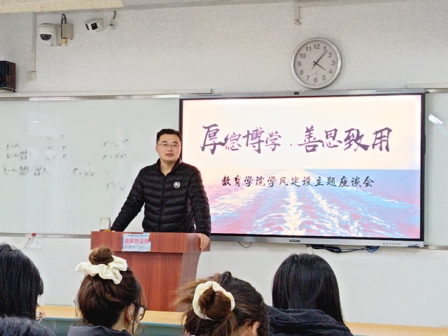 為進一步強化學(xué)風(fēng)建設(shè),提升教育質(zhì)量,培養(yǎng)優(yōu)秀人才,教育學(xué)院于12月12日下午舉辦了學(xué)風(fēng)建設(shè)座談會。本次會議由學(xué)生工作辦公室主任符琳主持,各班班長及學(xué)習(xí)委員出席了此次會議。 符琳在會議開始時強調(diào)了學(xué)風(fēng)建設(shè)的緊迫性和重要性。他提出了兩項具體要求:首先,要嚴(yán)格維護考試紀(jì)律。隨著各類考試的臨近,強調(diào)考場紀(jì)律顯得尤為重要。他要求班長和學(xué)習(xí)委員在班級中重點強調(diào)這一點,以展現(xiàn)教育學(xué)院的優(yōu)良學(xué)風(fēng)和學(xué)紀(jì)。其次,他提出了“四個一”倡議,即鼓勵每位學(xué)生改正一個不良習(xí)慣,參與至少一項學(xué)術(shù)競賽,為宿舍做一件好事,以及每個班級選出一名宿舍調(diào)解員。符琳從多個角度闡述了學(xué)風(fēng)學(xué)紀(jì)的重要性,并提出了具體實施方法,要求班委成員及時準(zhǔn)確地傳達信息,并盡職盡責(zé)地協(xié)助相關(guān)工作。 座談會現(xiàn)場氣氛熱烈,學(xué)委與學(xué)生代表們積極踴躍發(fā)言。他們將班級實際情況與同學(xué)們的意見有機結(jié)合,針對當(dāng)前在學(xué)習(xí)過程和課堂情境中所面臨的一系列問題進行了闡述。從專業(yè)認知、課程安排、課程內(nèi)容、課堂秩序和教師授課形式等多個維度表達了同學(xué)們當(dāng)前的感受和想法。 會后,與會人員紛紛表示不僅要在思想上高度重視學(xué)風(fēng)建設(shè),更要在行動上積極踐行,將學(xué)風(fēng)建設(shè)的理念融入到學(xué)習(xí)和生活的每一個環(huán)節(jié),努力營造一個濃厚的學(xué)風(fēng)氛圍。(教育學(xué)院撰稿:黃夢蝶 王娜 初審:張弦樂 復(fù)審:符琳 終審:王迅) |