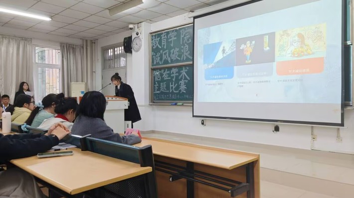 11月24日下午3時(shí)30分,教育學(xué)院社會(huì)實(shí)踐與志愿服務(wù)中心在3棟101教室開展了“‘誠(chéng)’風(fēng)破浪,‘信’在學(xué)術(shù)”主題活動(dòng),此次活動(dòng)旨在通過(guò)演講比賽的形式,強(qiáng)化大家對(duì)學(xué)術(shù)誠(chéng)信的認(rèn)知,讓每一位參與者在學(xué)術(shù)之海中能夠憑借誠(chéng)信“乘風(fēng)破浪”,堅(jiān)守學(xué)術(shù)的道德底線,推動(dòng)同學(xué)們?cè)趯W(xué)術(shù)方面的健康發(fā)展。 本次比賽的評(píng)委是教育學(xué)院團(tuán)委學(xué)生兼職副書記朱思宇、周琴,團(tuán)委學(xué)生會(huì)主席團(tuán)成員楊子涵,社會(huì)實(shí)踐與志愿服務(wù)中心副部長(zhǎng)盛雨霏。 比賽過(guò)程中,各支隊(duì)伍均派出一名成員登臺(tái),以精心準(zhǔn)備的PPT為輔助,展開了一場(chǎng)以“學(xué)術(shù)誠(chéng)信”為主題的演講比賽。參賽者們通過(guò)ppt講解,對(duì)學(xué)術(shù)誠(chéng)信有了更為深刻的認(rèn)識(shí)和理解。學(xué)術(shù)誠(chéng)信不僅體現(xiàn)在重大的學(xué)術(shù)成果中,更體現(xiàn)在我們學(xué)習(xí)的方方面面,此次活動(dòng)不僅讓參賽者了解到學(xué)術(shù)誠(chéng)信的重要性,同樣也在我們的校園內(nèi)營(yíng)造了濃厚的學(xué)術(shù)誠(chéng)信氛圍。 相信此次活動(dòng)的成功舉辦可以讓同學(xué)們?cè)诮窈蟮娜兆永铮?/span>“誠(chéng)”風(fēng)破浪,“信”在學(xué)術(shù)為引導(dǎo),在學(xué)術(shù)的道路上秉持誠(chéng)信、不斷前行。(教育學(xué)院撰稿:李亞軒、王婷萱 初審:張弦樂 復(fù)審:符琳 終審:王迅) |