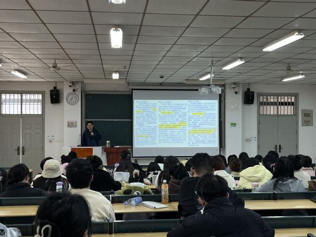 11月24日中午12時(shí)30分,教育學(xué)院在3-101教室開展了以“奪取全面建設(shè)社會主義現(xiàn)代化國家新勝利——黨的二十大精神解讀”為主題的入黨積極分子培訓(xùn)課。此次黨課邀請了馬克思主義學(xué)院概論課教研室主任金小方教授講授。 黨課開始之際,金小方通過回憶黨史,充分調(diào)動了入黨積極分子們對黨的熱情。首先,金小方就黨的二十大召開做了簡要介紹,并以此對二十大報(bào)告作了全面的詳細(xì)的解讀。他介紹,報(bào)告正文可總結(jié)為十五個(gè)方面,并由整體向局部,層層遞進(jìn)地將黨的二十大報(bào)告思想面向?qū)W員們作了生動具體的闡述。他還指出,二十大報(bào)告要求全黨同志必須做到三個(gè)務(wù)必,牢記五個(gè)必由之路。他聯(lián)系實(shí)際用貼近生活的解讀方式加深了在場學(xué)員們對黨的重要思想的理解。回望過去,在黨的領(lǐng)導(dǎo)下我國各項(xiàng)事業(yè)取得了偉大的成就。在全面建設(shè)社會主義現(xiàn)代化國家的新征程上,他強(qiáng)調(diào),學(xué)員們要牢記習(xí)近平總書記的囑托,懷抱夢想且腳踏實(shí)地,肩負(fù)起“強(qiáng)國一代”的歷史重任,立志做有理想、敢擔(dān)當(dāng)、能吃苦、肯奮斗的新時(shí)代青年。 通過本次黨課的培訓(xùn),入黨積極分子們充分全面地理解了黨的二十大精神,對此有了更深刻的理解和感悟。希望全體入黨積極分子能夠聯(lián)系實(shí)際、付諸實(shí)踐,用黨的要求嚴(yán)格規(guī)范自己的思想和行為,早日成為一名合格的黨員。(撰稿:王娜 彭錦,審稿:王多慈) |