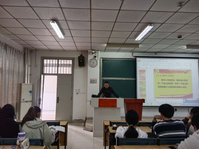 為進(jìn)一步做好入黨積極分子培養(yǎng)工作,提高積極分子思想覺悟和政治理論水平,進(jìn)一步端正入黨動(dòng)機(jī),加強(qiáng)黨性錘煉,11月22日12點(diǎn)30分,教育學(xué)院在3棟101開展了入黨積極分子第二次黨課培訓(xùn)。本次黨課邀請(qǐng)學(xué)生處處長丁增云老師主講,110名入黨積極分子參與培訓(xùn)。 丁增云老師以充分發(fā)揮先鋒模范作用為引,從入黨動(dòng)機(jī)和入黨程序、大學(xué)生先鋒模范作用的內(nèi)涵,大學(xué)生黨員發(fā)揮先鋒模范作用存在的問題以及原因,發(fā)揮先鋒模范作用的主要途徑四個(gè)方面深入淺出地幫助積極分子提高對(duì)黨的認(rèn)識(shí)。要求同學(xué)們把思想落實(shí)到行動(dòng)上、落實(shí)到具體工作中,以更加積極主動(dòng)的姿態(tài)向黨組織靠攏。 通過本次培訓(xùn)課程,不僅讓培訓(xùn)的同學(xué)對(duì)入黨有了更加深刻地認(rèn)識(shí),形成正確的入黨動(dòng)機(jī),也為以后如何發(fā)揮大學(xué)生黨員先鋒模范作用提供了可行的途徑。相信經(jīng)過本次課程的培訓(xùn),入黨積極分子將更加積極的向黨組織靠攏,會(huì)更加努力的提高自己的思想境界。(撰稿:張雪云 曾婉玉,審稿:王多慈) |