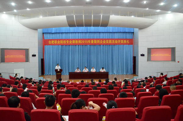 8月6日,合肥職業(yè)院校專業(yè)課教師2015年暑期到企業(yè)實踐活動開班典禮在我校圖書館學(xué)術(shù)報告廳成功召開,合肥市教育局副局長唐文水,合肥學(xué)院校長張文兵,校督導(dǎo)鄭永紅,合肥市教育局職成處、財審處有關(guān)負(fù)責(zé)人出席開班典禮。西偉德寶業(yè)快可美(合肥)有限公司總經(jīng)理代啟宏、副總經(jīng)理吳守祥以及格力電器、合肥美菱股份有限公司、海爾集團(tuán)合肥園區(qū)等10家企業(yè)負(fù)責(zé)人以及合肥市22所職業(yè)院校180名教師參會,開班典禮由鄭永紅主持。