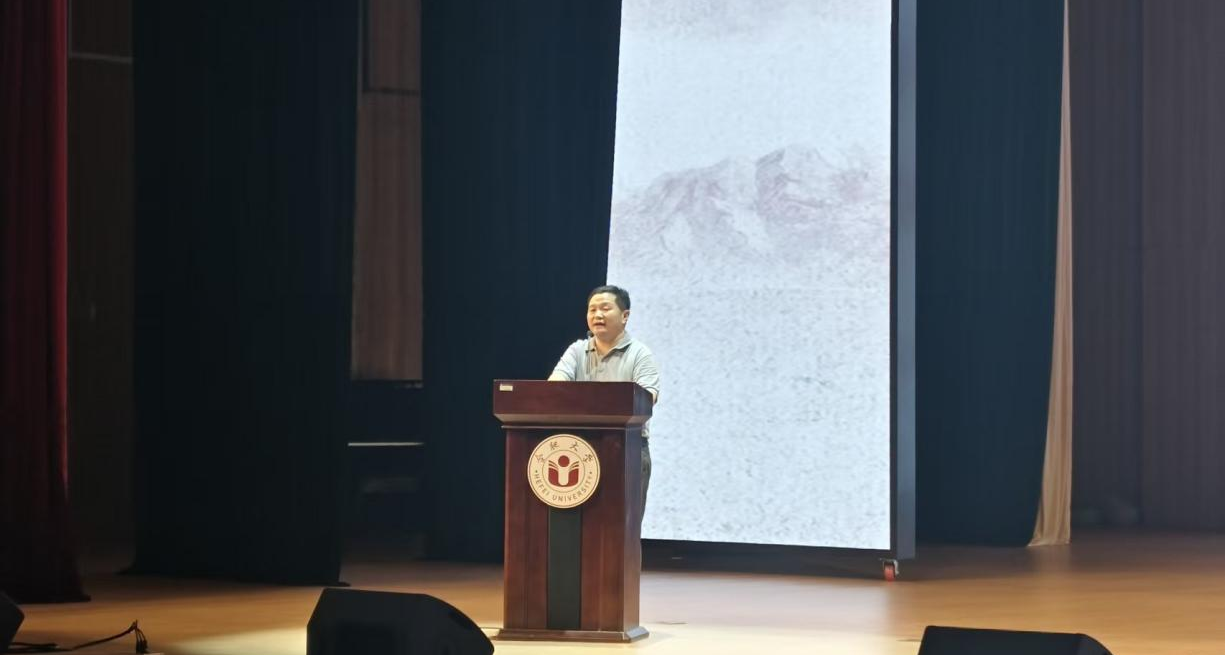 典禮伊始,余海峰院長代表學(xué)院發(fā)表致辭,向懷揣夢想踏入校園的2025級新生表示熱烈歡迎。他在講話中深情回顧學(xué)院發(fā)展歷程:從最初的數(shù)學(xué)教研室,逐步發(fā)展成為擁有學(xué)科體系完善、師資力量雄厚和科研成果豐碩的特色學(xué)院,讓新生們對學(xué)院的綜合實力與深厚底蘊有了全面且深刻的認識。針對新生未來的大學(xué)學(xué)習(xí),余海峰院長鼓勵同學(xué)們沉下心來鉆研數(shù)學(xué)理論知識,筑牢專業(yè)根基,同時要緊跟時代步伐,密切關(guān)注人工智能、大數(shù)據(jù)等前沿領(lǐng)域的發(fā)展動態(tài),努力實現(xiàn)理論與實踐的深度融合。