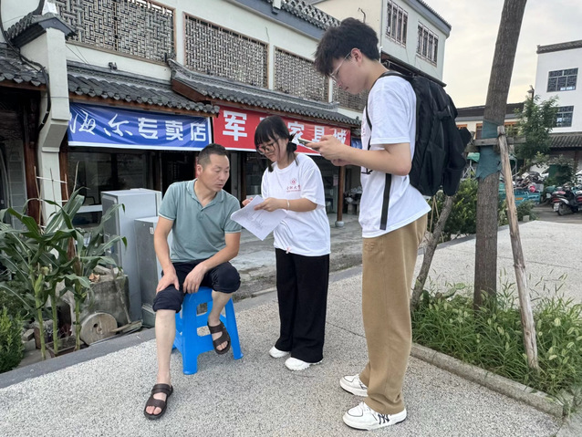 午后,同學(xué)們兵分多路,分別圍繞智慧環(huán)境治理技術(shù)與傳統(tǒng)手工業(yè)展開調(diào)研。他們深入社區(qū)、街道等,將專業(yè)知識(shí)與實(shí)地情況結(jié)合,在與當(dāng)?shù)厝藛T的熱情深入探討中,了解當(dāng)?shù)仫L(fēng)土人情和實(shí)際發(fā)展現(xiàn)狀、探索科技賦能與傳統(tǒng)創(chuàng)新的融合新路徑,用青春視角為涇縣發(fā)展建言獻(xiàn)策。