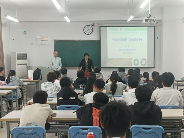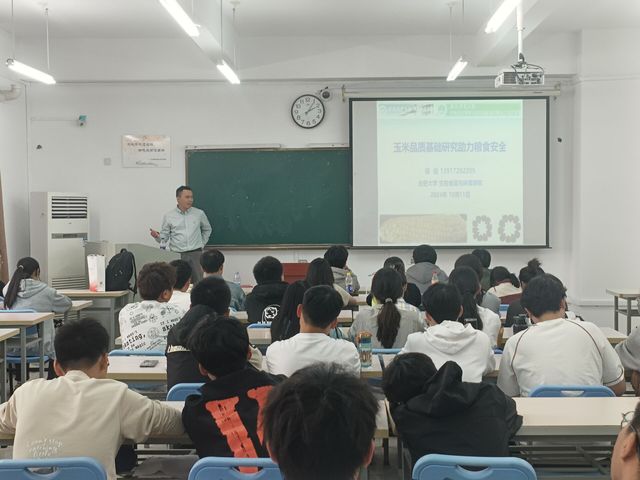 為加強學校與校友之間的聯(lián)系,分發(fā)揮優(yōu)秀校友的示范引領(lǐng)作用,幫助學生看清自身發(fā)展方向,2024年10月11日,生物食品與環(huán)境學院在生化樓201教室舉辦了一場以“玉米品質(zhì)基礎研究助力糧食安全”為主題的精彩講座。本次講座由我校杰出校友楊俊擔任主講,生物食品與環(huán)境學院黨委書記李秀娟、院團委負責人楊林與會,22食安以及24生工3班學生參與。