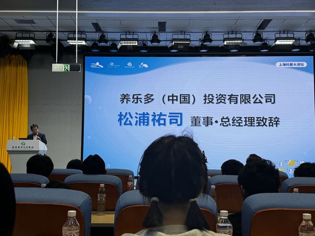 方波館長的開場詞高屋建瓴,強(qiáng)調(diào)了科普對于食品領(lǐng)域的重要性,為接下來的精彩內(nèi)容奠定了基礎(chǔ)。隨后,養(yǎng)樂多中國投資有限公司的松浦祐司董事總經(jīng)理登臺致辭。松浦祐司董事總經(jīng)理詳細(xì)地向同學(xué)們介紹了養(yǎng)樂多里面益生菌的好處,讓同學(xué)們對益生菌的作用有了更深入的了解。他的講解生動形象,結(jié)合實(shí)際案例,使同學(xué)們深刻認(rèn)識到益生菌在維護(hù)人體健康方面的重要價(jià)值。緊接著,上海科普教育發(fā)展基金會袁正宏副理事長致辭。袁正宏副理事長從科普教育的角度出發(fā),闡述了舉辦此次食品專題報(bào)告會的意義,鼓勵(lì)同學(xué)們積極參與科普活動,提高自身科學(xué)素養(yǎng)。
