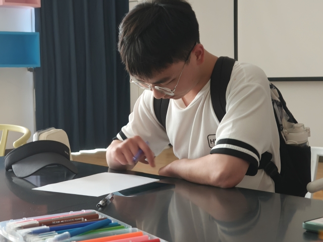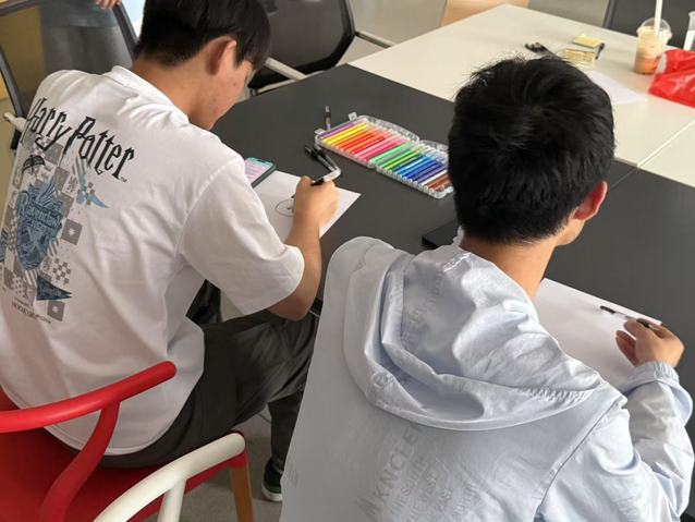 活動現(xiàn)場,參與者用A4紙和彩筆繪制代表3D全息能量場的大泡泡,將自己置于中心,在周圍小泡泡寫下個人相關信息包括不限于個人興趣、特長、目標、缺點等。通過這種可視化的自我表達,同學們對自身特點有了更清晰的認識,更好的與心相擁,發(fā)現(xiàn)自身的閃光點與不足。