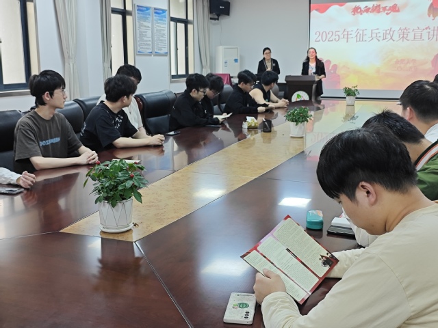 宣講會現(xiàn)場,鄭國平向同學們詳細解讀了2025年征兵政策,涵蓋報名流程、入伍條件、服役待遇以及退役后的學業(yè)和就業(yè)保障等內(nèi)容。參軍入伍不僅是當代青年錘煉意志、實現(xiàn)理想的重要途徑,更是維護國家安全、助力強軍事業(yè)的責任擔當。同時,詳細解讀了大學生入伍在學費補償、升學優(yōu)惠、就業(yè)保障等方面的政策紅利,為同學們打消后顧之憂。并著重強調(diào),大學生參軍不僅是履行保家衛(wèi)國的神圣義務(wù),還能在軍隊這個大熔爐中得到全方位的鍛煉和提升?;迎h(huán)節(jié)中,同學們踴躍提問,涉及服役期間的專業(yè)發(fā)展、退伍后的考研加分政策等。