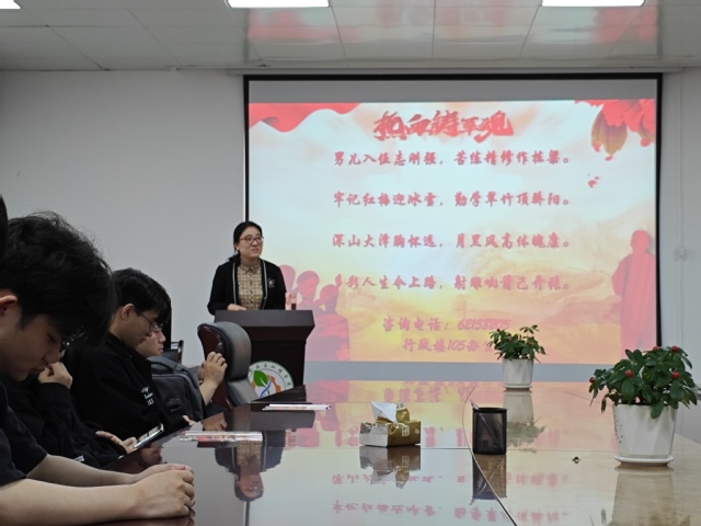 為響應(yīng)國家征兵號召,鼓勵大學生投身國防事業(yè),生物食品與環(huán)境學院于5月23日上午十點半在生化樓三樓會議室成功舉辦“熱血鑄軍魂——2025年征兵政策宣講會”。本次宣講會由學生處國防動員科科長鄭國平主講,生物食品與環(huán)境學院黨委副書記晉松及部分學生參加。
