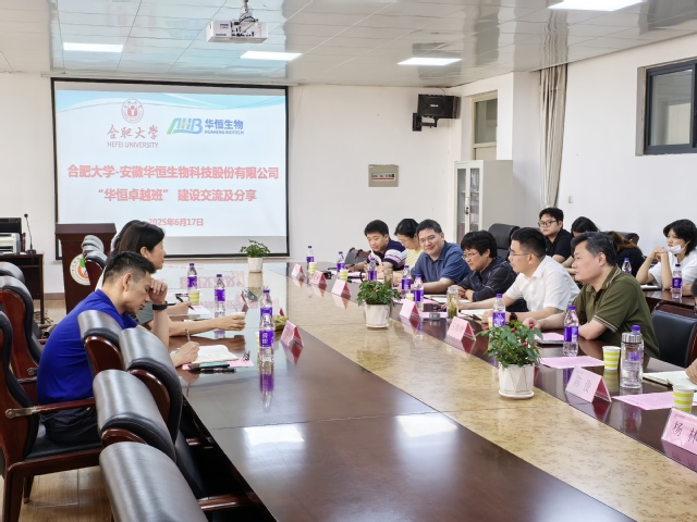 6月17日,校黨委副書(shū)記、校長(zhǎng)任永,校黨委委員、副校長(zhǎng)王曉峰一行深入生物食品與環(huán)境學(xué)院參與指導(dǎo)合肥大學(xué)——安徽華恒生物科技股份有限公司“華恒卓越班”建設(shè)交流會(huì),圍繞學(xué)校高質(zhì)量人才培養(yǎng)、校企合作新發(fā)展等工作,與安徽華恒生物科技股份有限公司董事長(zhǎng)兼總裁郭恒華一行座談交流。