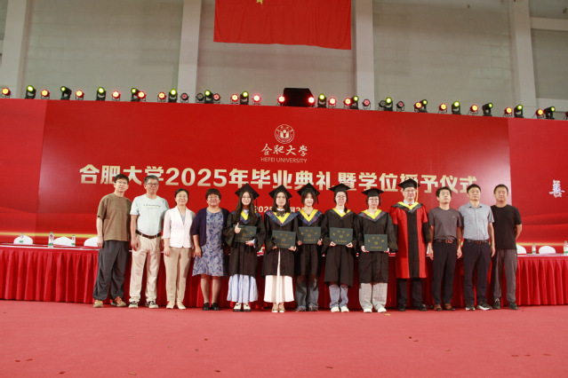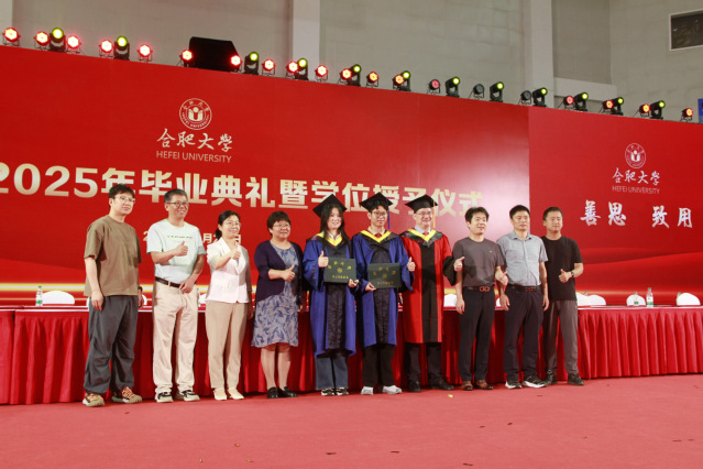 儀式現(xiàn)場(chǎng),莊重與溫情交融。學(xué)院教師代表登臺(tái)致辭,向全體畢業(yè)生致以熱烈祝賀。數(shù)年前,同學(xué)們負(fù)親友期許、懷理想,入合肥大學(xué),開啟在該校的學(xué)習(xí)階段。自入校時(shí)的懵懂,至畢業(yè)前的篤定,校園見證其思維得以訓(xùn)練、思想實(shí)現(xiàn)交流,也見證學(xué)校由合肥學(xué)院更名為合肥大學(xué)的發(fā)展進(jìn)程。隨后,晉松介紹院長(zhǎng)阮班鋒,黨委書記李秀娟等出席的教師代表,熟悉的身影喚起校園記憶,掌聲雷動(dòng),滿是學(xué)子對(duì)師長(zhǎng)的敬意。伴隨莊嚴(yán)宣告,學(xué)位授予儀式正式開啟。研究生、本科生畢業(yè)生們依次上臺(tái),由生物學(xué)院學(xué)術(shù)委員會(huì)成員們親手頒發(fā)證書、撥正流蘇,閃光燈定格這一神圣時(shí)刻,是學(xué)術(shù)傳承,更是青春加冕。