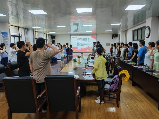 大會(huì)在莊嚴(yán)的國(guó)歌聲中拉開帷幕,全體黨員肅立起立,奏唱國(guó)歌,以嘹亮的歌聲表達(dá)對(duì)黨的無限忠誠(chéng)與熱愛。隨后,在晉松的領(lǐng)誓下,全體黨員重溫入黨誓詞。錚錚誓言,鏗鏘有力,回蕩在會(huì)場(chǎng),激勵(lì)著每一位黨員不忘初心,牢記使命。