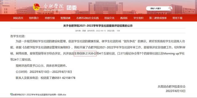 為進(jìn)一步規(guī)范對(duì)學(xué)生社團(tuán)的管理,促進(jìn)學(xué)生社團(tuán)的健康發(fā)展,促進(jìn)學(xué)生社團(tuán)形成“創(chuàng)先爭(zhēng)優(yōu)”的意識(shí),營(yíng)造良好的學(xué)生社團(tuán)發(fā)展氛圍,依據(jù)《合肥學(xué)院學(xué)生社團(tuán)建設(shè)管理實(shí)施細(xì)則》,經(jīng)學(xué)生社團(tuán)建設(shè)管理評(píng)議委員會(huì)研究,共青團(tuán)合肥學(xué)院委員會(huì)決定開(kāi)展合肥學(xué)院2021-2022學(xué)年學(xué)生社團(tuán)年審工作,即星級(jí)評(píng)定及續(xù)建。