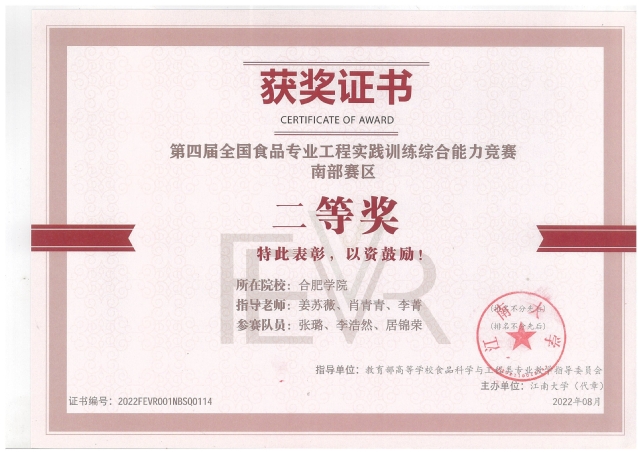 2022年全國食品專業(yè)工程實踐訓練綜合能力競賽