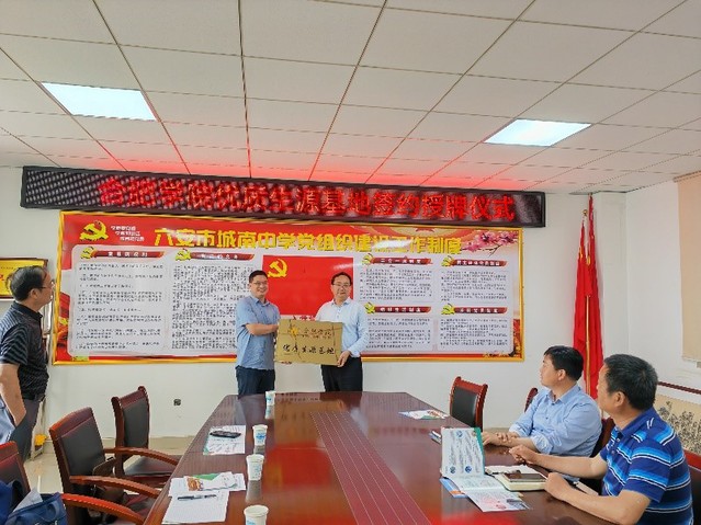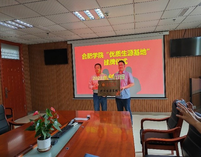 在六安市城南中學(xué),阮班鋒院長(zhǎng)首先就我院辦學(xué)特色、專(zhuān)業(yè)設(shè)置、就業(yè)前景和2023年招生計(jì)劃等情況向城南中學(xué)校長(zhǎng)劉傳寶及領(lǐng)導(dǎo)班子進(jìn)行了介紹。隨后,合肥學(xué)院和城南中學(xué)舉行了“優(yōu)質(zhì)生源基地”授牌儀式。劉傳寶校長(zhǎng)表示將通過(guò)優(yōu)質(zhì)生源基地的平臺(tái)建設(shè)進(jìn)一步增強(qiáng)兩校之間的溝通、交流與合作。