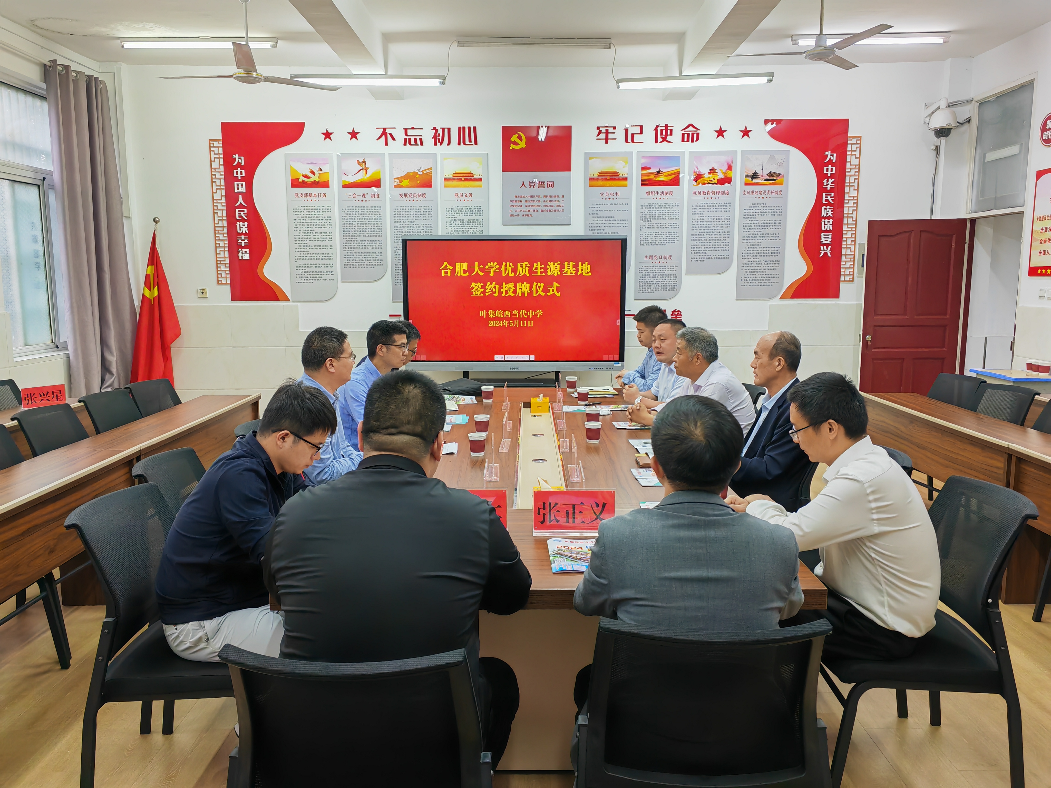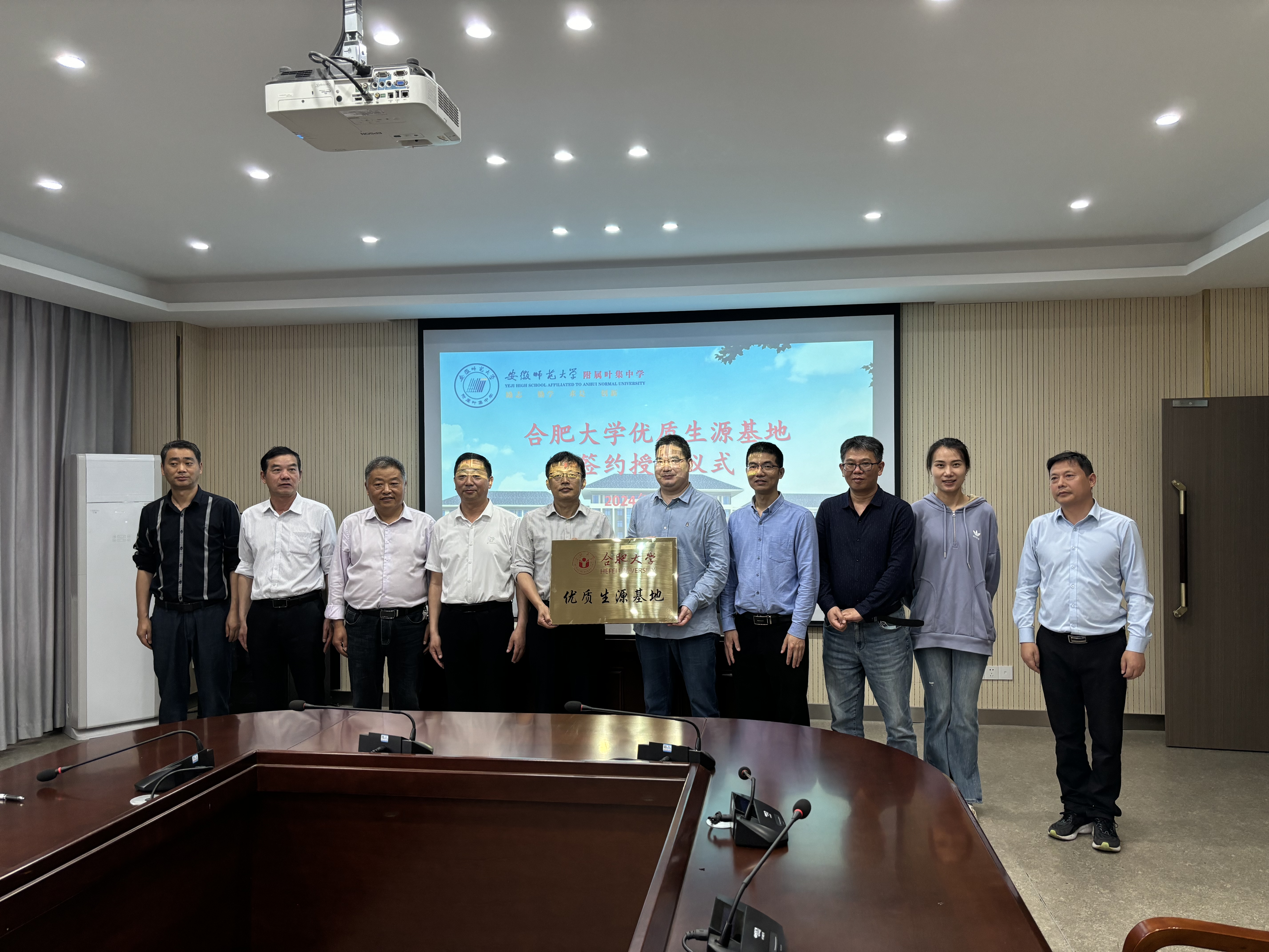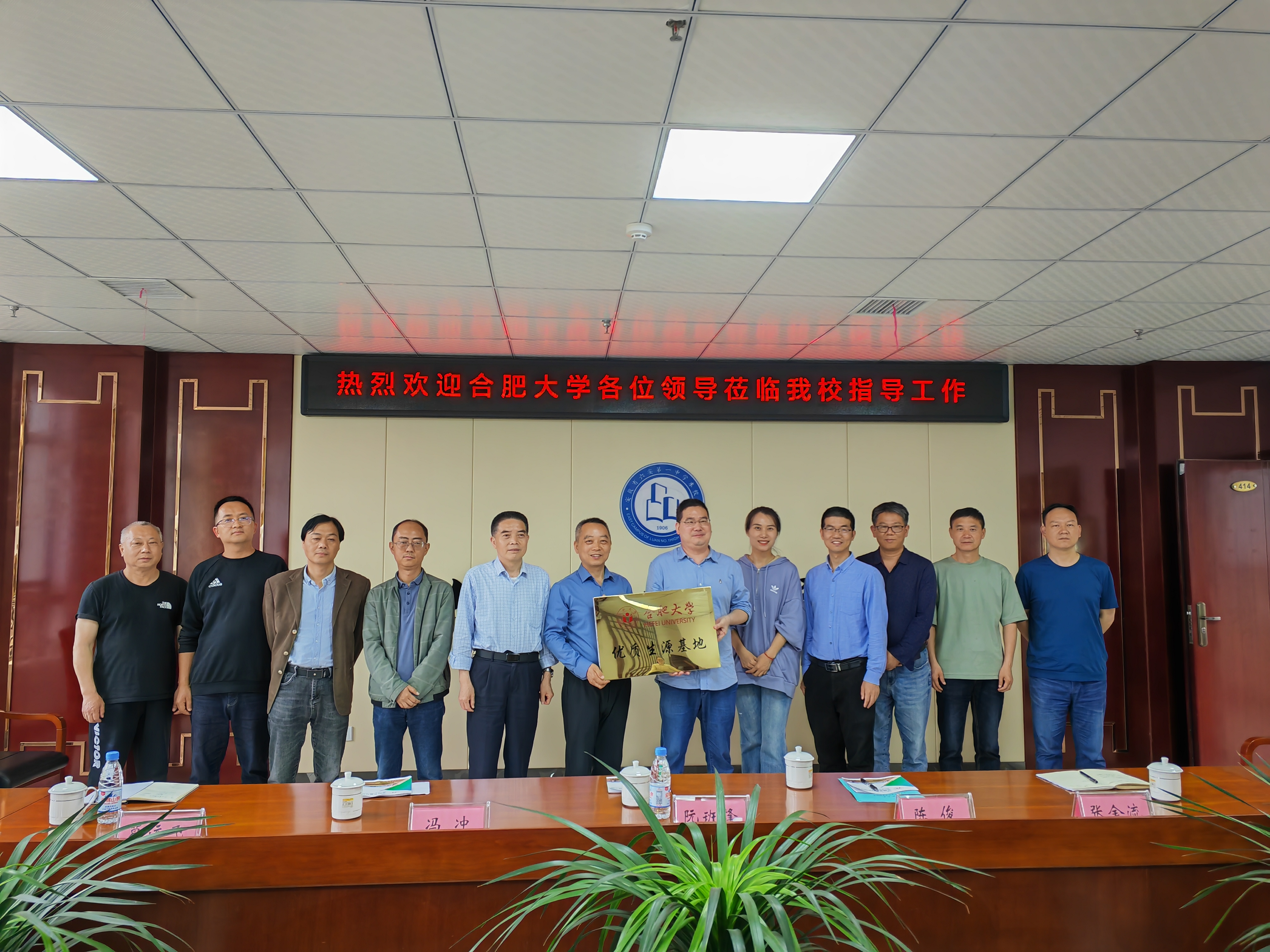 在安師大附屬葉集中學(xué),阮班鋒就我院在人才培養(yǎng)、教學(xué)科研、科技創(chuàng)新、專業(yè)設(shè)置等方面的特點(diǎn)與優(yōu)勢進(jìn)行了詳細(xì)介紹,希望通過共建優(yōu)質(zhì)生源基地的方式,進(jìn)一步加強(qiáng)兩校之間的交流與合作。安師大附屬葉集中學(xué)校長章志學(xué)表示,合肥大學(xué)授予安師大附屬葉集中學(xué)“優(yōu)質(zhì)生源基地”稱號(hào),不僅是對(duì)學(xué)校辦學(xué)成果和人才培養(yǎng)的充分認(rèn)可,更為兩校今后深入開展交流與合作奠定了堅(jiān)實(shí)的基礎(chǔ)。座談會(huì)后,雙方簽署《合肥大學(xué)優(yōu)質(zhì)生源基地共建協(xié)議書》,并舉行了合肥大學(xué)和安師大附屬葉集中學(xué)“優(yōu)質(zhì)生源基地”授牌儀式。