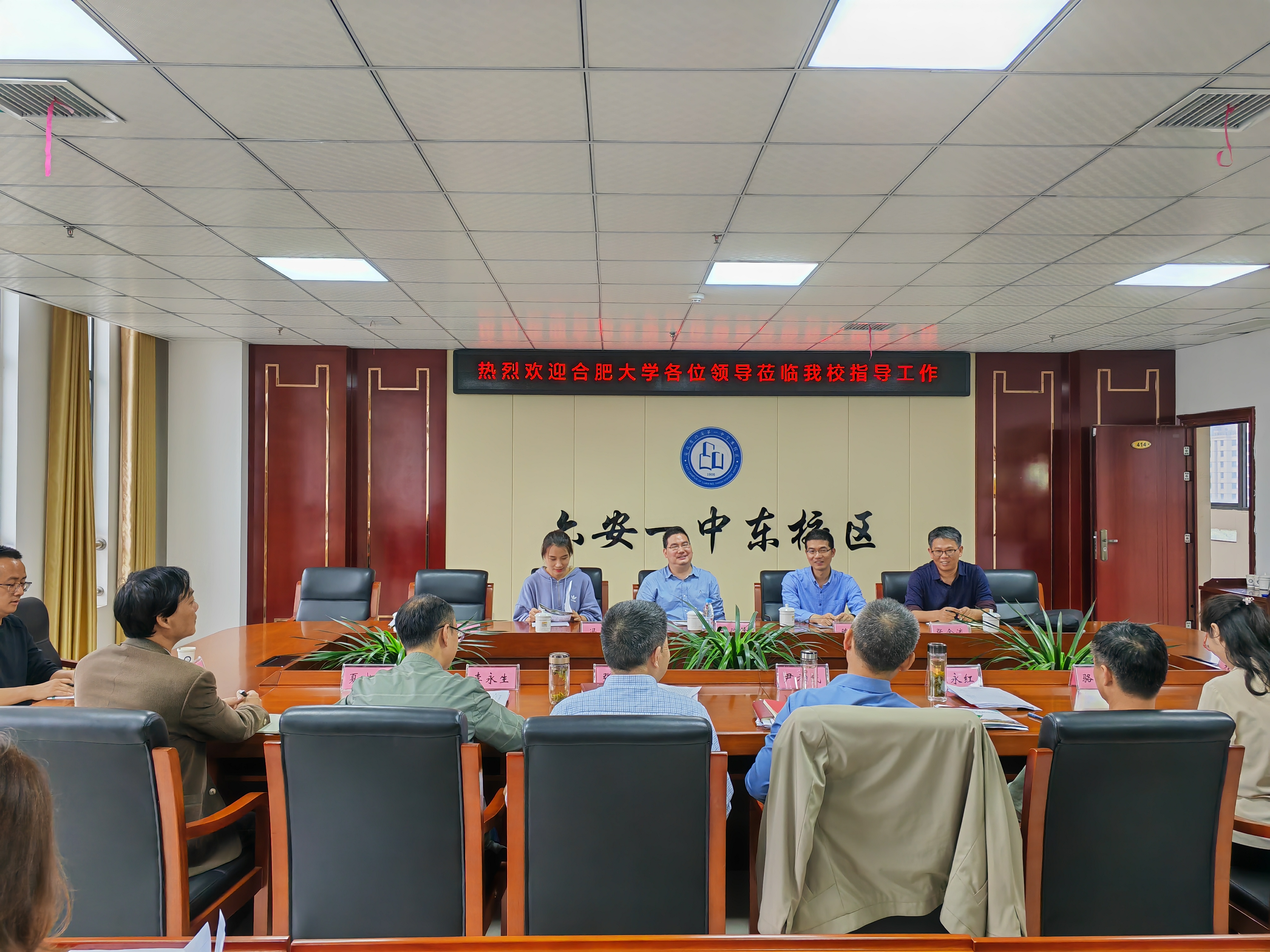 在六安一中東校區(qū),阮班鋒對(duì)六安一中東校區(qū)近年來為合肥大學(xué)輸送了大批優(yōu)秀學(xué)生表示衷心感謝,并邀請東校區(qū)的師生到合肥大學(xué)進(jìn)行參觀交流。陳俊介紹了我院辦學(xué)特色、就業(yè)前景和2024年招生計(jì)劃等情況。尹孝成校長隨后簡要介紹了東校區(qū)的發(fā)展歷史、辦學(xué)理念和高考升學(xué)率等基本情況,表示將進(jìn)一步加強(qiáng)與大學(xué)教育的良性互動(dòng),積極探索中學(xué)教育與大學(xué)教育銜接貫通的路徑,共同搭建平臺(tái),協(xié)同育人。座談會(huì)后,雙方舉行了合肥大學(xué)和六安一中東校區(qū)“優(yōu)質(zhì)生源基地”授牌儀式。