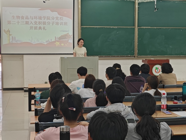 5月13日中午十二點半,生物食品與環(huán)境學院分黨校第二十三期入黨積極分子培訓班開學典禮在生化樓一階梯教室順利召開。出席本次活動的有黨委研究生工作部部長葛春梅,生物食品與環(huán)境學院黨委書記李秀娟,黨委副書記晉松。本次大會由趙暮雨主持,各班入黨積極分子參與。