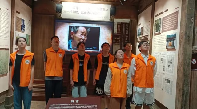 “朋友!中國是生育我們的母親。你們覺得這位母親可愛嗎?我想你們是和我一樣的見解,都覺得這位母親是蠻可愛蠻可愛的……”從大山深處傳來了一陣瑯瑯的讀書聲,循著聲音望去,是調(diào)研團(tuán)隊(duì)員們在集體朗誦方志敏同志的《可愛的中國》?!班l(xiāng)”遇青春,“演”動綠夏調(diào)研團(tuán)穿越翠綠的樹林,攀登險峻的山嶺,來到革命舊址,先后參觀了嚴(yán)家古村遺址、石臺紅色文化展示館。在這里,隊(duì)員們見到了方志敏同志在這里的故事,為方志敏同志對革命矢志不渝,對黨、對祖國、對人民的愛矢志不渝的精神所感動。在紅色紀(jì)念館,隊(duì)員們自發(fā)朗誦了方志敏烈士的《可愛的中國》,在朗讀中體會百年前的青年對祖國母親的熱愛;在筆墨間感受百年前的青年對祖國的美好未來的憧憬;在緬懷中堅(jiān)定自己的理想信念,作為新時代中國青年,要為建設(shè)“可愛的中國”貢獻(xiàn)青春力量。