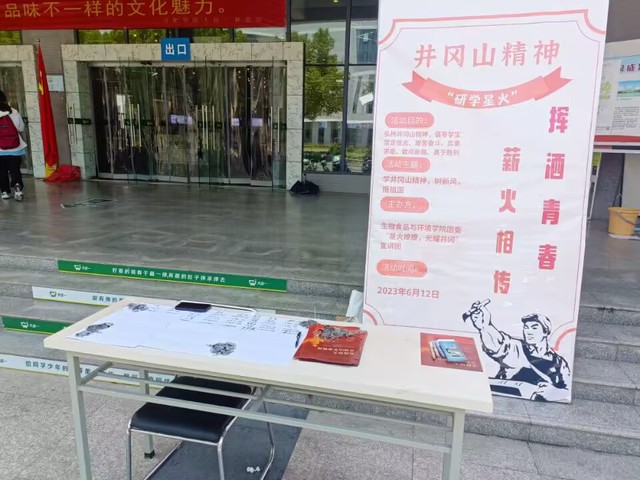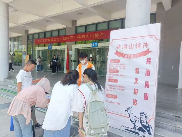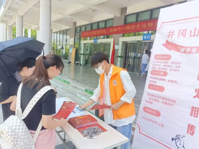 為深入學習宣傳貫徹習近平新時代中國特色社會主義思想和黨的二十大精神,引導動員青年學生大力弘揚井岡山精神,加強學生紅色基因教育傳承。2023年6月12日在生物食品與環(huán)境學院團委的指導下,合肥學院“星火燎原,光耀井岡”宣講團于二期食堂門口舉辦了“研學星火”活動,活動主題為“學井岡山精神,樹新風,報祖國”。