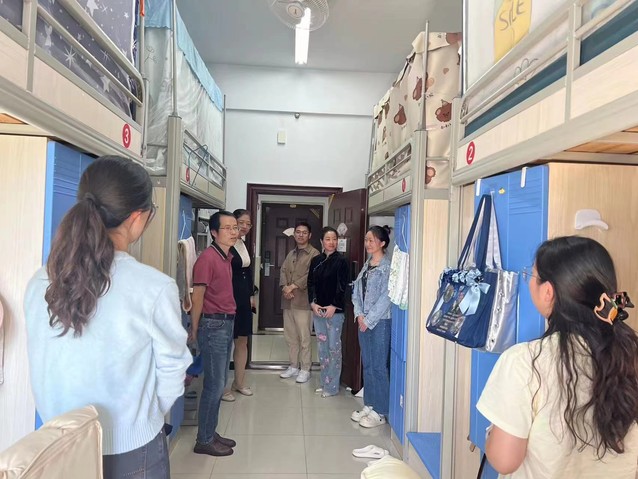 走訪過程中,丁增武院長詢問了學生開學后學習和生活情況,引導(dǎo)學生在新學期提前做好學業(yè)規(guī)劃,認真學習和生活。重點叮囑同學們遵守學校各項規(guī)章制度,重視宿舍衛(wèi)生,養(yǎng)成良好的個人衛(wèi)生習慣,共同營造和諧友愛的宿舍氛圍。