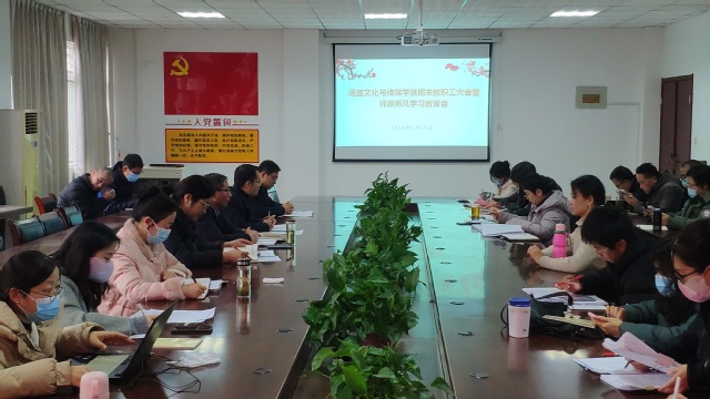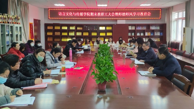 1月14日下午,語(yǔ)言文化與傳媒學(xué)院在五棟二樓會(huì)議室舉行了全體教師大會(huì)暨師德師風(fēng)集中學(xué)習(xí)教育會(huì),學(xué)院領(lǐng)導(dǎo)班子成員及全體教職工參加會(huì)議。
