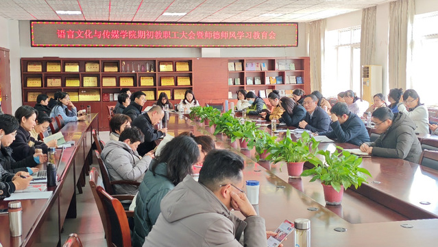 2月18日,語言文化與傳媒學(xué)院在五棟二樓會議室舉行了期初全體教職工大會暨師德師風(fēng)學(xué)習(xí)教育會,學(xué)院領(lǐng)導(dǎo)班子成員及全體教職工參加會議。