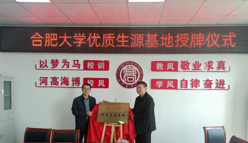 座談后,丁增武與劉心喜簽署了《合肥大學(xué)優(yōu)質(zhì)生源基地共建協(xié)議書》,并共同為“合肥大學(xué)優(yōu)質(zhì)生源基地”揭牌。
